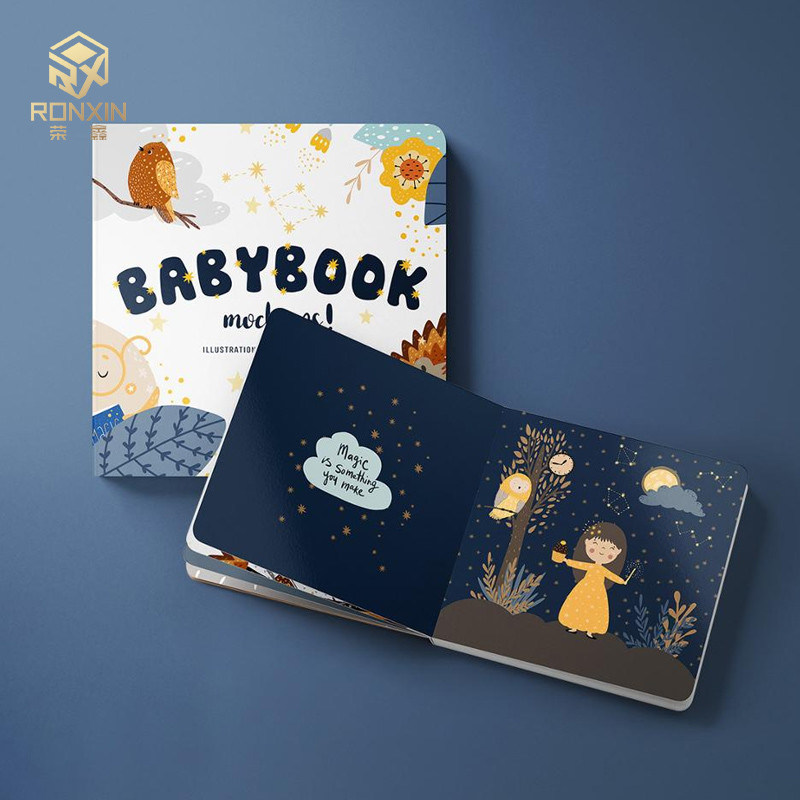 ব্লু পেপারবোর্ড হার্ডকভার চিন্ড্রেনের বইগুলি শিশুদের শিক্ষার জন্য ডিজাইন টেমপ্লেট সহ