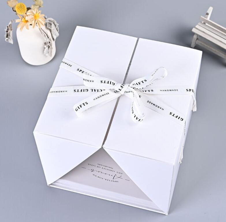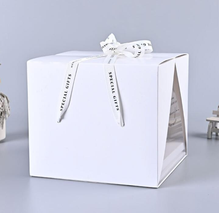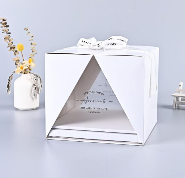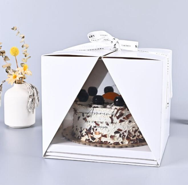 ফুড কেক উপহার প্যাকেজিংয়ের জন্য ফিতা সহ উইন্ডো সহ হোয়াইট ফোল্ডেবল ক্রাফট গিফট বক্স