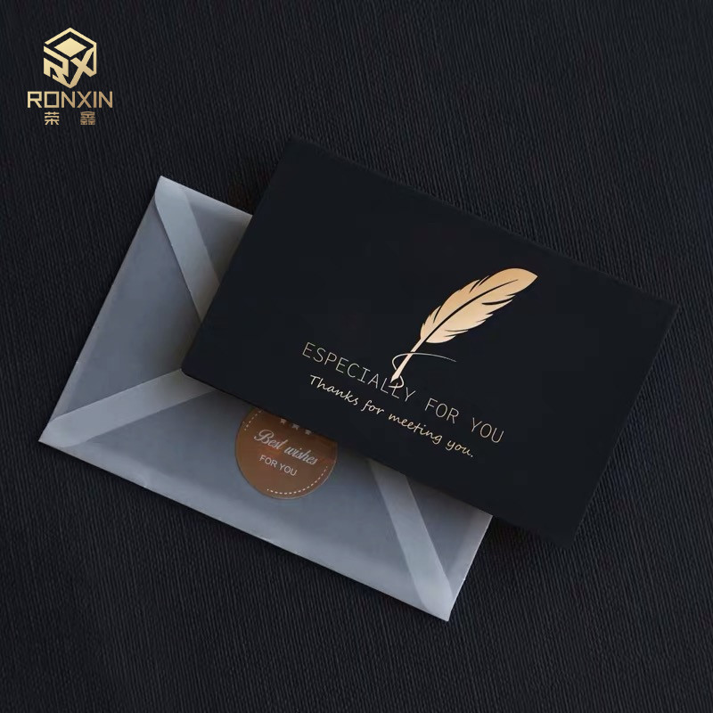 উপহার পার্টির জন্য লোগো হট স্ট্যাম্পিং সহ ব্ল্যাক আর্ট পেয়ার লেজার কাট ওয়েডিং কার্ড