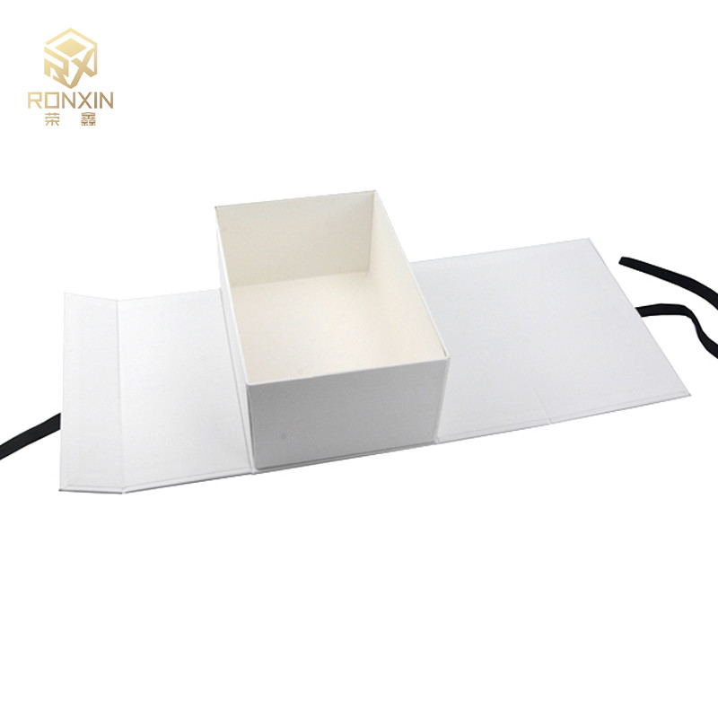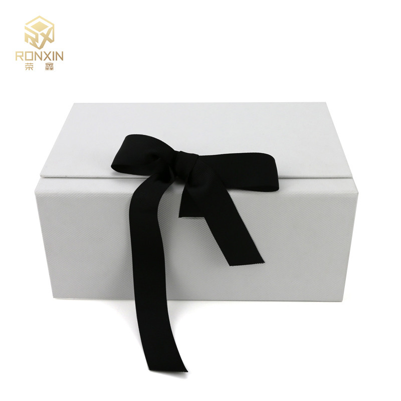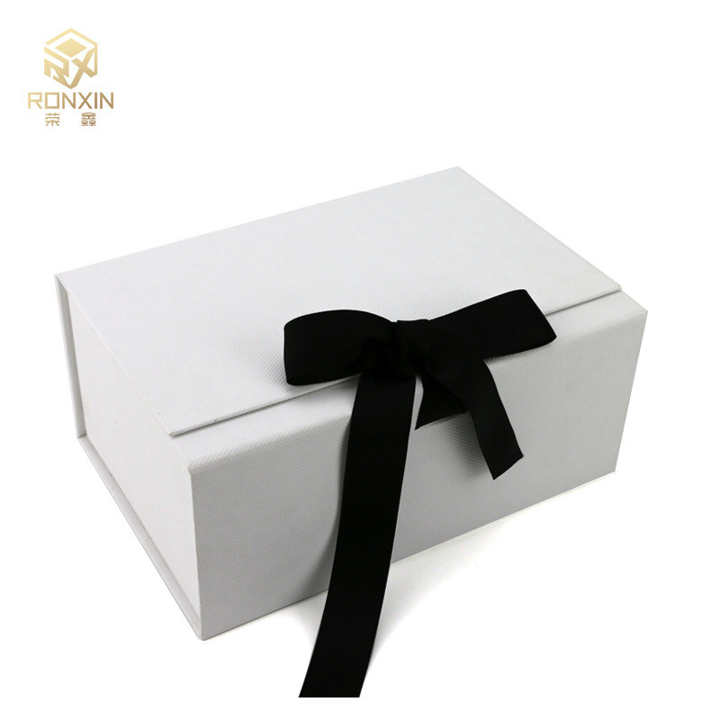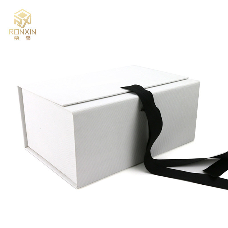 উপহার প্যাকেজিংয়ের জন্য রিবন ডিজাইন লোগো সহ সাদা পেপারবোর্ড ম্যাগনেটিক ক্লোজার উপহার বাক্স