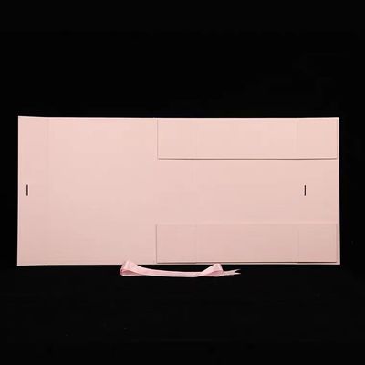 উপহার কসমেটিক প্যাকেজিংয়ের জন্য রিবন হ্যান্ডেল সহ গোলাপী পেপারবোর্ড ভাঁজযোগ্য উপহার বাক্স