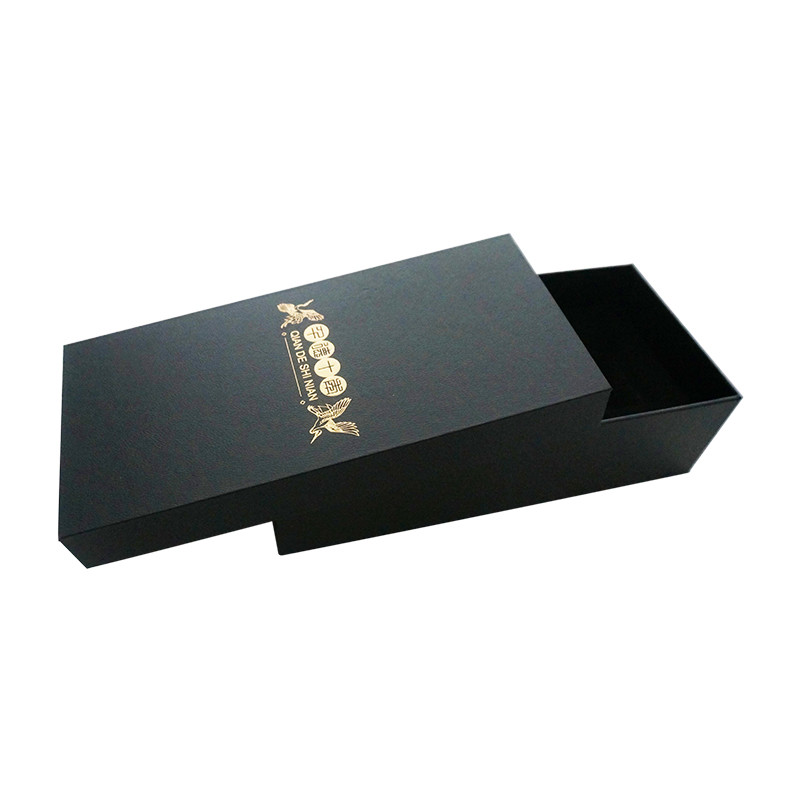 উপহার প্যাকেজিংয়ের জন্য ফয়েল হট স্ট্যাম্পিং লোগো সহ কালো আর্ট পেপার পেপারবোর্ড উপহারের বাক্স