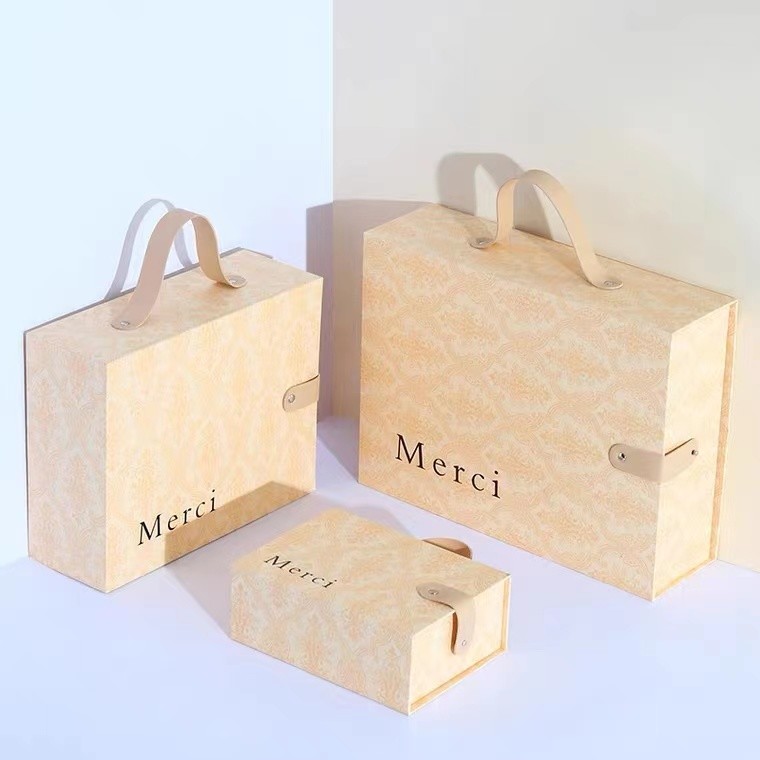 উপহার প্যাকেজিংয়ের জন্য হ্যান্ডেল প্রিন্টিং লোগো সহ আর্ট পেপার ম্যাগনেটিক ক্লোজার উপহার বাক্স