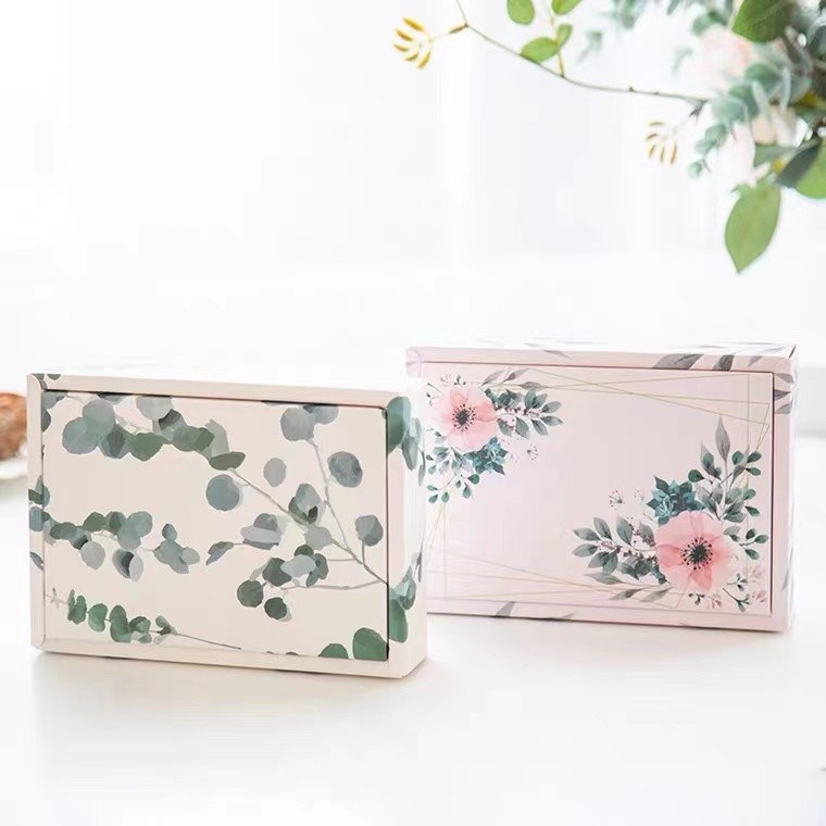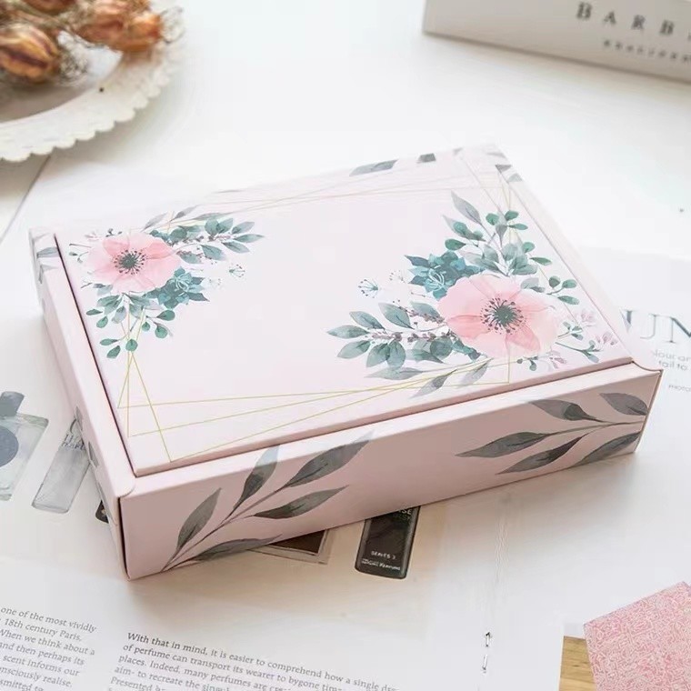 গিফট প্যাকেজিংয়ের জন্য রিবন সিএমওয়াইকে প্রিন্টিং সহ গোলাপী ফুলের প্রলিপ্ত কাগজের ভাঁজযোগ্য উপহার বাক্স