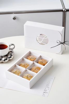খাদ্য প্যাকেজিংয়ের জন্য রিবন হ্যান্ডেল সহ সাদা প্রলিপ্ত কাগজের ভাঁজযোগ্য উপহার বাক্স